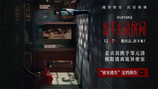 1905电影网讯 近日,惊悚悬疑电影《出不去的房间》发布“密室逃生”定档预告及海报,官宣将于12月7日全国上映。影片讲述了林小楠(姜贞羽 饰)为了帮助挚友陈沫(邹元清 饰)查清埋藏多年的真相,意外通过一个箱子魂穿进入了一座百年老宅。林小楠与陈沫开启极限逃生,试图在这场生死未卜的冒险中活着逃出去。影片曾入围2024布鲁塞尔奇幻电影节WIP单元,2024FIRST电影产业放映单元,作为中国惊悚悬疑电影的探索之作,《出不去的房间》通过魂穿密室的故事设定、错综复杂的家庭关系、极限逃生的惊悚视角,展现了一场紧张又刺激的生死逃亡。定档预告中,林小楠(姜贞羽 饰)通过一个箱子与死去的晓雯灵魂互换,却被一个“疯子”关在了一座密室里。在林小楠不断尝试逃出密室的过程中,她无意中发现了晓雯死亡的真相,却因此陷入了更大的危机之中……密室里,幽暗的走廊、虚掩的房门、神秘的柜子,每一个房间都神秘莫测,似乎在诉说着晓雯死亡背后的故事。阿公(纪亚福 饰)、慧娟(巩容尔 饰)、文辉(刘敬宇 饰)各怀鬼胎,仿佛要将小楠和不可告人的秘密一起埋藏。好友陈沫通过收音机与小楠“隔空”对话,两人企图通过密室里蛛丝马迹的线索,逃离这个恐怖之地。为了解开这座百年老宅的秘密,小楠和陈沫面临着一系列挑战和抉择,姐妹两人决定联手在绝望中寻找生机。生死未卜的密室逃亡、晓雯死亡背后的真相、房间里不可告人的秘密即将揭开……定档海报中,林小楠与陈沫看似身处同一密室,却又仿佛置身不同时空。林小楠身着红衣,不可思议地目视前方,消失的影子为陌生的环境更添几分神秘感;陈沫则双手紧握放在身前,神情中带有一丝不安与担忧。空间内,层层叠叠的楼梯宛如迷宫般错综复杂,似乎没有尽头,直指无尽深渊。一个巨大的木偶头以张牙舞爪之态立在房间中,表情极其愤怒,正注视着这一切的发生。旁边几只奇异小木雕也为这空间平添了几分阴森与恐怖色彩。墙上的全家福照片更显诡异,脸庞消失的小男孩是从未存在过还是被刻意隐藏身份?他与镜子里戴猪头面具的小男孩又有着怎样的关系?整个房间,仿佛被一层无形的密网紧紧包裹,每一个细节都透露着不寻常的气息,一个个谜团呼之欲出。电影《出不去的房间》由刘方祺执导,章天娇、刘方祺担任编剧,姜贞羽、邹元清、刘敬宇、巩容尔领衔主演,纪亚福特邀主演,将于12月7日全国上映。