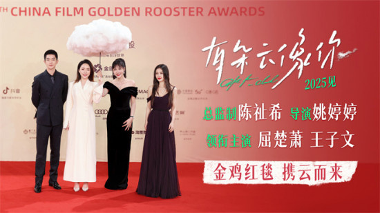 1905电影网讯 11月15日至16日,爱情奇幻电影《有朵云像你》总监制陈祉希、导演姚婷婷及领衔主演屈楚萧、王子文出席了第37届中国电影金鸡奖系列活动。电影《有朵云像你》讲述了逝去的爱人秦天(屈楚萧 饰)在雨季来临时以八年前年轻时的模样出现,尽管记忆被清零,但依旧在雨滴的见证下与妻子萧凡(王子文 饰)重写爱情奇迹的故事。在金鸡电影市场华语电影巡礼活动中,影片斩获了“2024年金鸡年度期待华语电影”,将于2025年上映。 在第37届中国电影金鸡奖闭幕式红毯仪式上,电影总监制陈祉希、导演姚婷婷以及领衔主演屈楚萧、王子文携云朵伞亮相,以一抹浪漫精心装点红毯,仪式感拉满。这把精致的云朵伞,不仅映衬出影片中唯美的爱情氛围,也寓意着秦天(屈楚萧 饰)和萧凡(王子文 饰)之间跨越时空、至死不渝的深情。红毯上,屈楚萧向观众解读自己所饰演的角色秦天是一个“像云一样的人,他从云朵中来”。王子文也表示这朵云不仅象征着秦天,更承载了妻子萧凡无尽的思念。两人此次携手演绎了一段年龄相差八岁的跨时空姐弟恋。在红毯合影环节,屈楚萧绅士地为王子文撑起了这把寓意爱情与思念的云朵伞,甜蜜的氛围瞬间弥漫开来,网友直呼“甜度超标,这姐狗感可太对味了!”11月15日,在金鸡电影市场华语电影巡礼活动中,电影《有朵云像你》荣获“2024年金鸡华语巡礼年度期待华语电影”。导演姚婷婷在现场表示:“期待是一种很美好的情绪,因为只有足够的爱和思念,才能带来更多的期待,就像我们电影中的秦天和萧凡一样。”影片此前发布的海报和预告向观众展现了其独特新颖的爱情设定——逝去的人会变成云,只要你足够思念,TA就会变成雨,穿过云层回来看你。电影中,屈楚萧饰演的丈夫秦天,在雨季来临时竟以八年前相爱时的年轻样貌,回到了王子文饰演的妻子萧凡身边。尽管秦天的记忆被清零,但依然与妻子重燃爱火,让观众感受到了爱情可以超越生死界限的力量。正如总监制陈祉希所说:“云很轻,但爱情很重。希望在一个有云有雨有你的时间,让这份爱不期而至。”电影《有朵云像你》将于2025年上映,敬请期待。