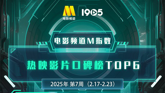 1905电影网讯 “电影频道M指数”2025年第7周结果发布。2月17日-2月23日,“电影频道M指数”热映影片口碑榜前6位依次为: