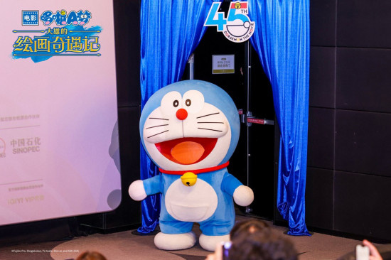 影片放映结束后,在观众热烈的欢呼声中,哆啦A梦以憨态可掬的形象惊喜登场。它热情地伸出圆手,向在场观众亲切打招呼:“中国的朋友们大家好,我是哆啦A梦,很高兴跟你们见面。看到大家这么高兴,我也非常开心,希望接下来能与大家度过一段愉快的时光。”