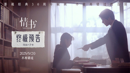 1905电影网讯 由岩井俊二编剧并执导,中山美穗、丰川悦司、酒井美纪、柏原崇主演的经典爱情电影《情书》将于5月20日全国重映。近日,影片发布终极预告,并官宣将于5月17日-18日开启超前点映。