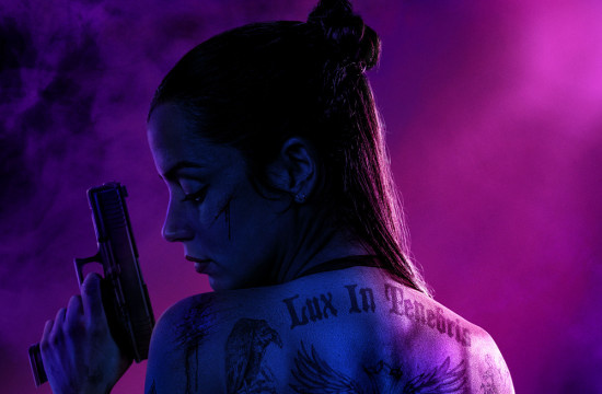 官方公布的电影海报以深邃的暗紫色烟雾为基调,安娜·德·阿玛斯饰演的女杀手伊芙裸背侧颜的吸睛造型,极具震撼。满背的纹身,兼具性感与健美的肌肉线条,在光影下仿佛利刃版透露着锋芒;高举手握的枪支,与冷峻的侧脸相对,妩媚低蹙的眼眸与脸上刀尖略过的伤口,似乎预示着伊芙在硝烟弥漫之下即将踏上寻找杀父真相的复仇之路。整个海报既彰显了角色的高贵气质,又透着作为杀手的致命气息,完美诠释了“优雅与力量”的结合,将一个芭蕾舞者与冷血杀手完美融合在一起,张力十足。