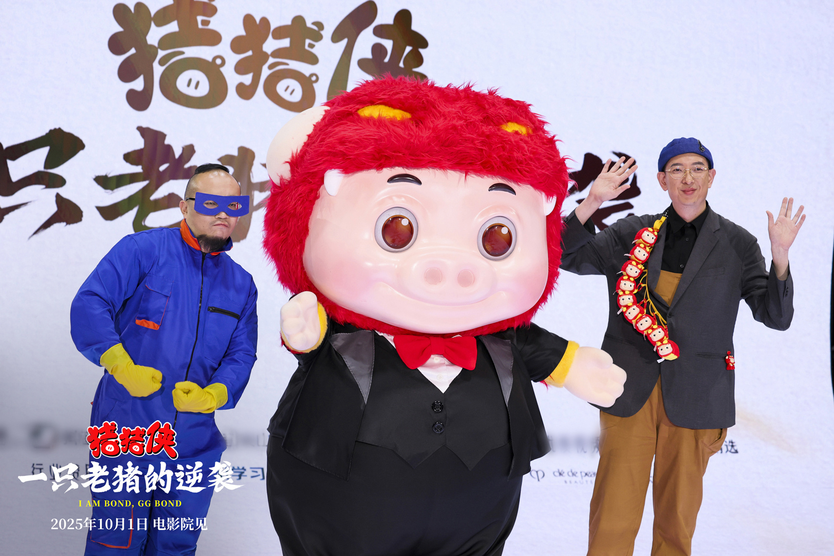 电影《猪猪侠·一只老猪的逆袭》总导演巴西携手猪猪侠亮相上海电影节红毯,片中大男主猪猪侠身穿燕尾服帅气登场,成为了全场的焦点,导演则cos片中的迷糊老师,同时手持“猪猪侠求职简历”的KT板一同登台,KT板上写满了猪猪侠各式各样的技能,主创花式整活,瞬间把现场气氛炒得十分火热。而“猪猪侠求职简历”背后写着的“好事即将发生”也引发了大家的好奇。随后在2025抖音电影奇遇夜活动上,便揭开了“好事”的神秘面纱,影片荣获抖音年度期待动画电影,总导演巴西、总制片人黄龙以及猪猪侠共同登上红毯并签名、领奖,导演本次cos成了超人强,并且模仿它的口吻兴奋地跟大家打招呼,总制片人身穿“猪猪侠痛衣”强势吸睛,背后由猪猪侠吧唧拼成了10.1的数字,借此机会重磅官宣影片定档国庆上映的消息。