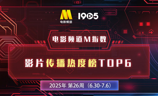 1905电影网讯 “电影频道M指数”2025年第26周结果发布。6月30日-7月6日,“电影频道M指数”热映影片传播热度榜前6位依次为: