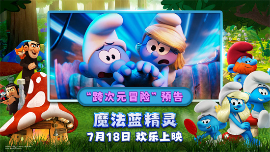1905电影网讯 近日,改编自经典动画IP的动画喜剧电影《魔法蓝精灵》发布“跨次元冒险”预告及海报,蓝精灵们开启更大世界观,跳出蘑菇屋,“破壁”闯入现实世界!
