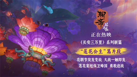 1905电影网讯 近日,热映中的追光动画巨制《聊斋:兰若寺》释出“莲花公主”篇正片片段,公主莲花携少年窦旭共游花朝节时的蜂国,开心之际,大黑妖突袭!蜂国女王携将士们迎战。瑰丽国度转瞬化为战场,“心有童真,化梦为真”的篇章主题在此刻燃到顶峰。影片由《长安三万里》原班人马倾力打造,是追光动画“新文化”系列第二部电影。