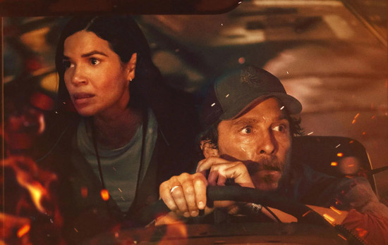 预告中,任性的巴士司机凯文(马修·麦康纳 饰)听到无线电传来求救信号,“普纳罗萨小学出现紧急情况,有23名孩子被困”,需要有人去接他们逃离这场山火,而凯文也要去找自己的儿子…最终,凯文先赶到了学校,与敬业的老师玛丽(亚美莉卡·费雷拉 饰)一起带着学生们逃离。当他赶去找儿子和母亲时,“已经太迟了”。面对这场失控的山火,还有一车的孩子,凯文在拥堵的高速公路上与时间和火焰赛跑。