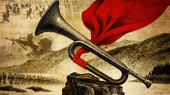 终极海报以极具史诗氛围的复古色调为基底,质感十足的画面,仿佛承载着14年抗战烽火硝烟的记忆。巍峨连绵的山川和奔腾不息的黄河激流之上,屹立的伟岸基石和代表胜利的冲锋号角,象征着中国共产党的中流砥柱作用是中国人民抗日战争胜利的关键。环绕四周的,则是一个个抗战历程的重要时刻:百团大战的胜利给日军的“因笼政策”以沉重打击,在抗日局面比较低沉时振奋了全国民心;毛泽东发表《对日寇的最后一战》声明,中国战场开始全面反攻,宣告了日本法西斯的末日……英雄群像与冲锋号角同框而现,凝聚出中国人民14年抗战艰辛历程中所展现的抗战热情与战斗意志。