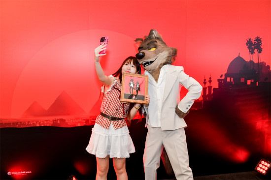 《坏蛋联盟2》特别观影场用“黄金”填满视线,用宝箱占据地面,打造24K“金币”辉煌的冒险世界。徒手从透明箱中“劫取”金砖的奇趣游戏引得现场来宾大摆长龙,争相体验;坏蛋天团的头牌人物“大坏狼”闪亮空降成为全场焦点,现场秒变粉丝见面会。
