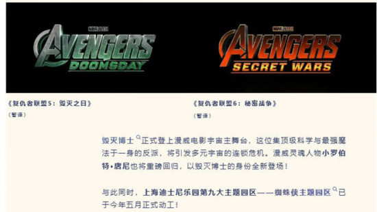 据悉,《复仇者联盟5:毁灭日》由罗素兄弟执导,与《复仇者联盟6》背靠背拍摄,将于2026年5月1日在北美上映;《复仇者联盟6:秘密战争》北美档期定于2027年5月7日。