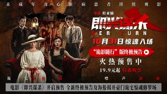 电影《即兴谋杀》由程亚楠执导,李庚希、邓家佳、刘奕铁领衔主演,黄晓明特别主演,岳佳颐、赵胤胤主演,杨皓宇特别出演,宗俊涛友情出演,吕鑫、龚毅星参加演出。影片将于10月31日全国上映,零帧上头,惊悚管够,正在火热预售中!