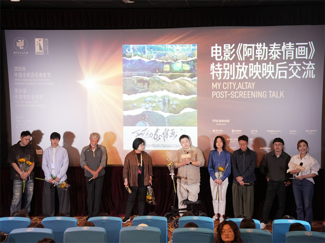 1905电影网讯 11月12日晚,电影《阿勒泰情画》亮相金鸡影展,举行特别放映活动。影片艺术总监田壮壮、剪辑指导周新霞与导演编剧胥瑞、潘智欣、卢漉、范江流、邓乃川、阿来·阿依达尔汗等主创来到映后现场,与观众互动交流。