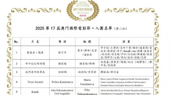 第17届澳门国际电影节第二批入围名单公布! 娱乐 11月19日 阳光太刺眼 取消关注 关注 私信 1905电影网讯 第17届澳门国际电影节第二批入围名单公布,陈可辛执导,章子怡、王传君、易烊千玺、赵丽颖、雷佳音、杨幂、大鹏、李现、范伟、此沙、张子枫等出演的《酱园弄·悬案》,游绍翔执导、五月天阿信监制,刘若英和薛仕凌主演的《我们意外的勇气》等19部影片在列。