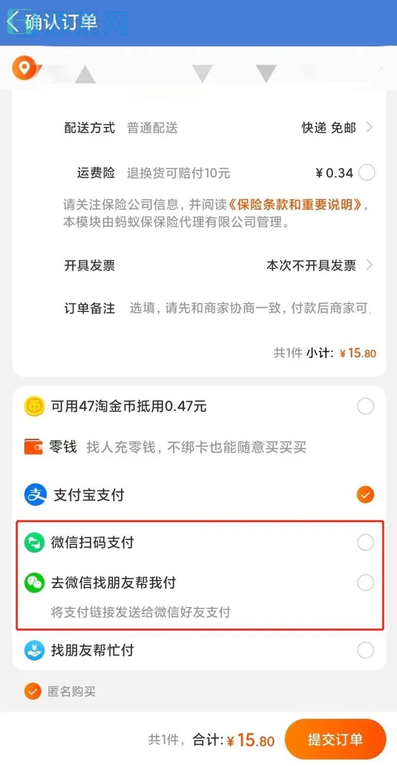 想必小伙伴们应该对互联互通这个词有所了解吧?毕竟在最近这段时间,国家的政策也是在倡导各大软件实现互联互通。近日,有网友发现淘宝终于要可以使用微信支付了,下面来看看~我们从图片可以看到,在淘宝下单支付方式这里,新增了选择微信扫码支付的选项,不过目前看来使用该功能略麻烦一些。