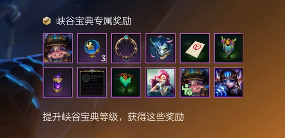 当召唤师购买任意版本峡谷宝典后,可立即领取1个史诗级皮肤随机宝箱。而在提升宝典等级的过程中,除了上述所有免费奖励外,召唤师还可额外获得总价值超过4500点券的专属奖励。